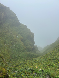 Day 3: This is another straightforward stretch, but the weather began to drizzle continuously throughout the hike. The next camp is at Bhoj Gadi, located at 11,000 feet over a 4.5 km stretch. The trail passes through even denser vegetation with numerous streams. You can see many mushrooms and some flowers along this stretch. This time, it drizzled continuously for an extended period, which was unfortunate as the Himalayan views were obscured.