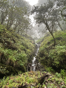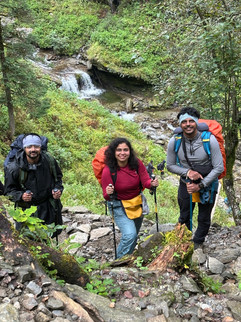 Day 2: We hiked from Kotgaon, located at 6,455 ft, up to Akondi, which is at 9,400 ft, over a 5 km stretch. This route appears straightforward for regular hikers. It passes through numerous streams and dense mountain vegetation. As observed to the left, just 15 minutes into the hike, we encountered a massive waterfall/stream.